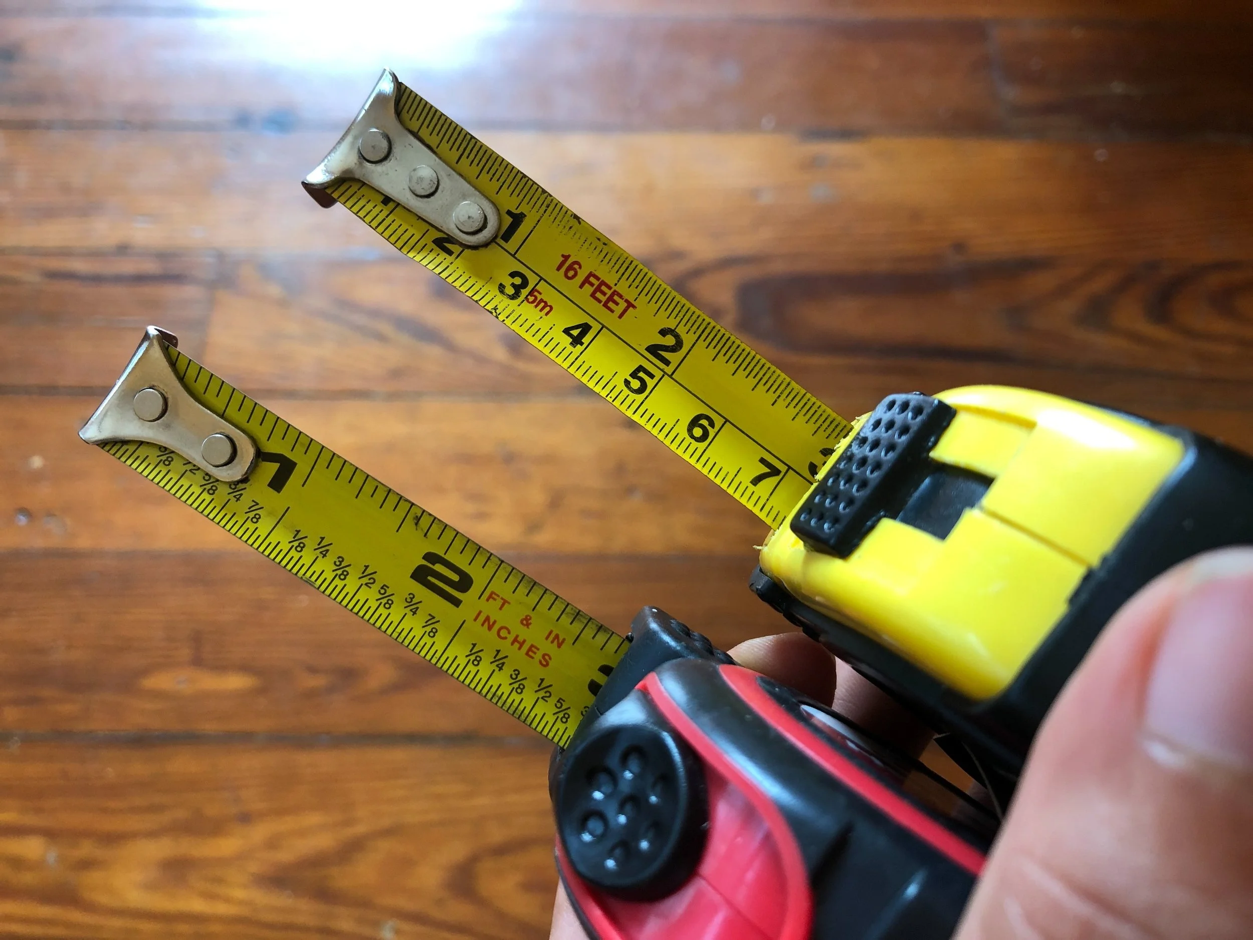 A measuring tape is one of those tools we’re never really taught how to use. For the most part it’s straight forward. Pull the tape out and measure. But did you know the mteal hook usually has a thickness of 1/8” and the wiggle room where it attaches to the tape is also 1/8”? That means if you use it as a hook around a door frame and pull out to measure, you’ll get the same measurement as if you push it up to a wall. Also you can use the plastic or metal housing that holds the tape as a quick measuring tool. The width of the housing often appears on its base for easy reference.